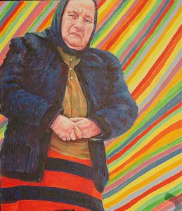 Senza titolo, donna con pappagallo verde in mano