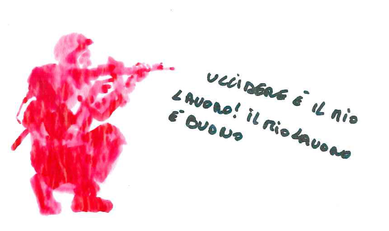 Senza Titolo | Domenico Piccolo | Marco | 2009 | Acrilico su carta oleata di uomo che spara | 18.5x25 cm | Galleria Federico Bianchi (MI) | completata |