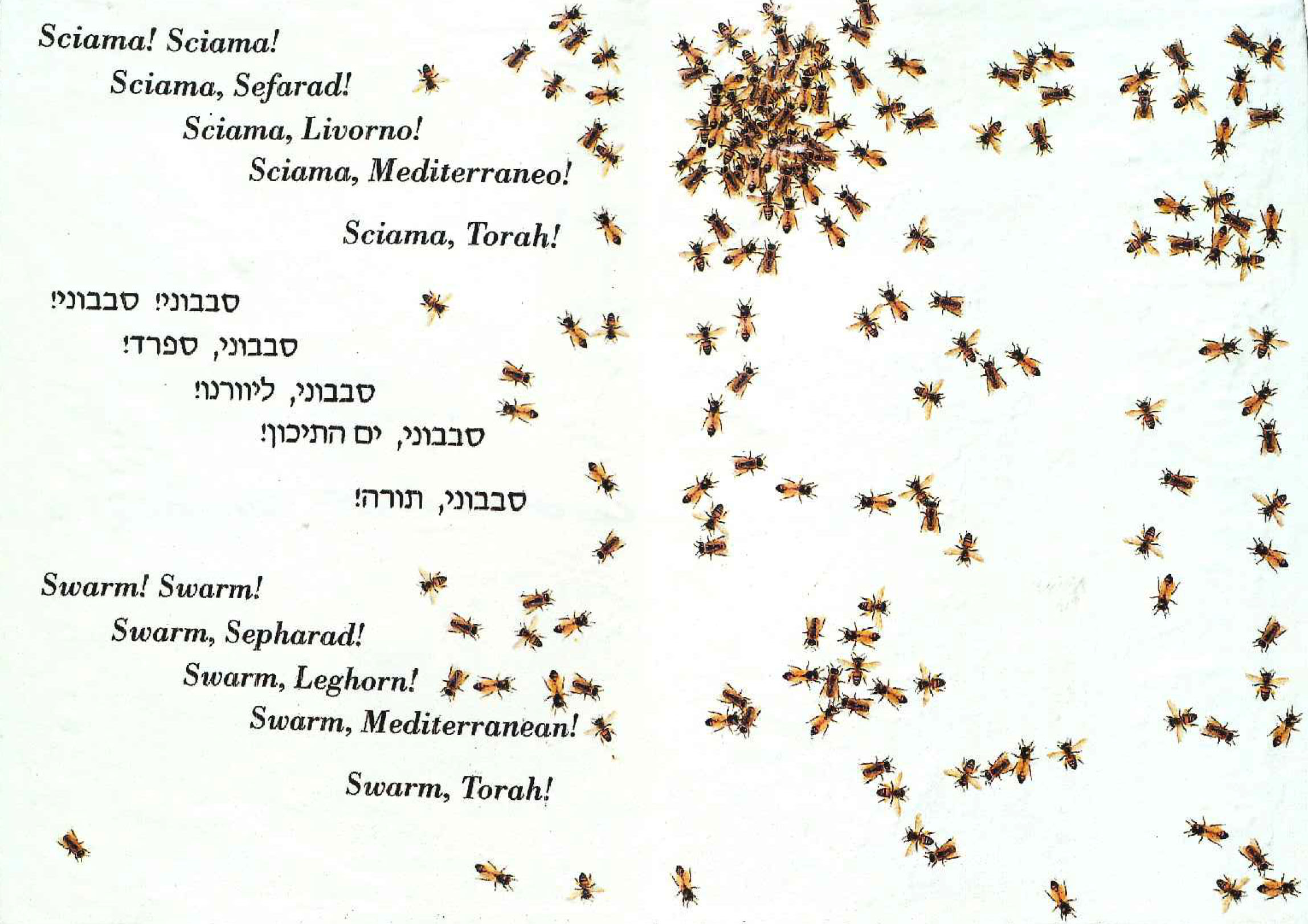 Le api della Torah | Emilio Isgrò | Marco | 2001 | Api su tavola in ceramica con scritte in ebraico. Es. 2/8 | 41x59 cm | Galleria Alberto Peola Arte Contemporanea (TO) | completata |