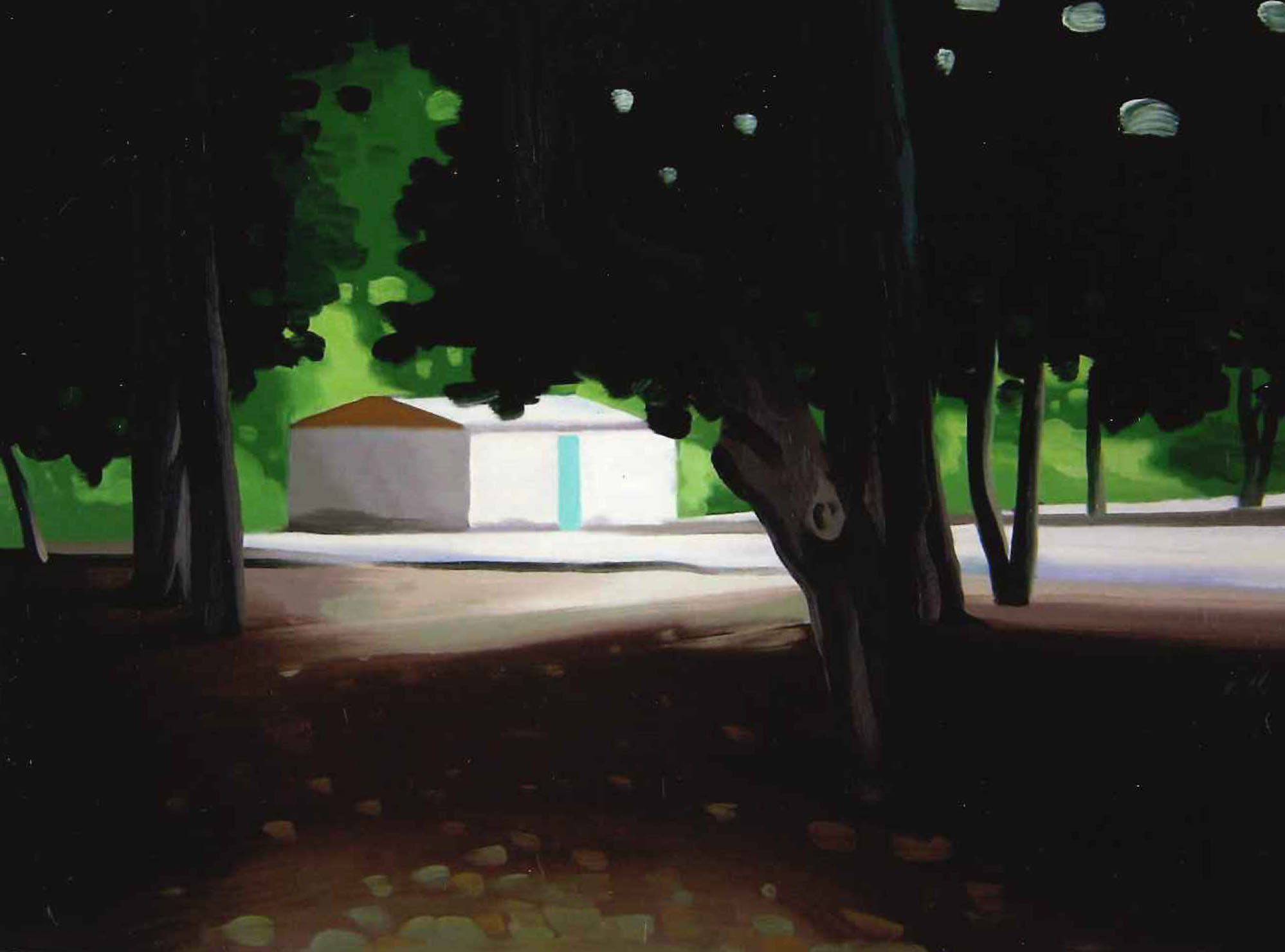 Platform 1 | Mike Silva | Marco | 2004 | Dipinto ad olio su tela raffigurante una casa nella radura | 45.5x61 cm | Galleria Astuni (LU) | completata |
