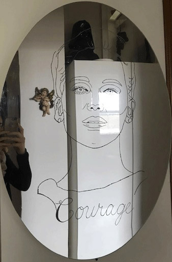 Courage | Andrea Williamson | Marco | 2016 | Opera unica con specchio, led, mdf | Variabili | Artista | completata |